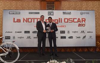 LA FOTOGALLERY. Il corridore sardo ha ritirato il premio della rivista, che ha festeggiato i suoi primi 20 anni, come miglior professionista italiano del 2015. Il direttore sportivo dell'anno è Stefano Zanini, anche lui dell'Astana
