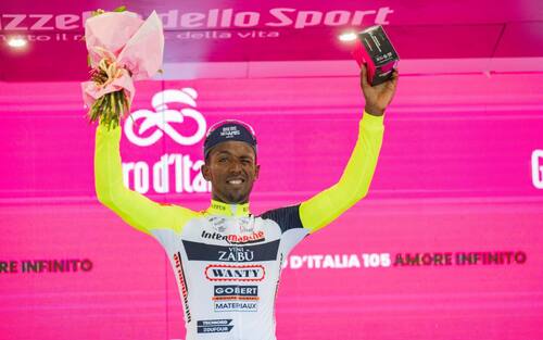 Biniam Girmay brucia Mathieu van der Poel sul traguardo di Jesi e si aggiudica la decima tappa del Giro d'Italia. Poi però il fuoriprogramma sul podio: nello stappare la bottiglia si fa male col tappo dello spumante, colpito in pieno nell'occhio. Tornato dall'ospedale dopo gli accertamenti, deciderà insieme allo staff medico se riprendere la corsa
