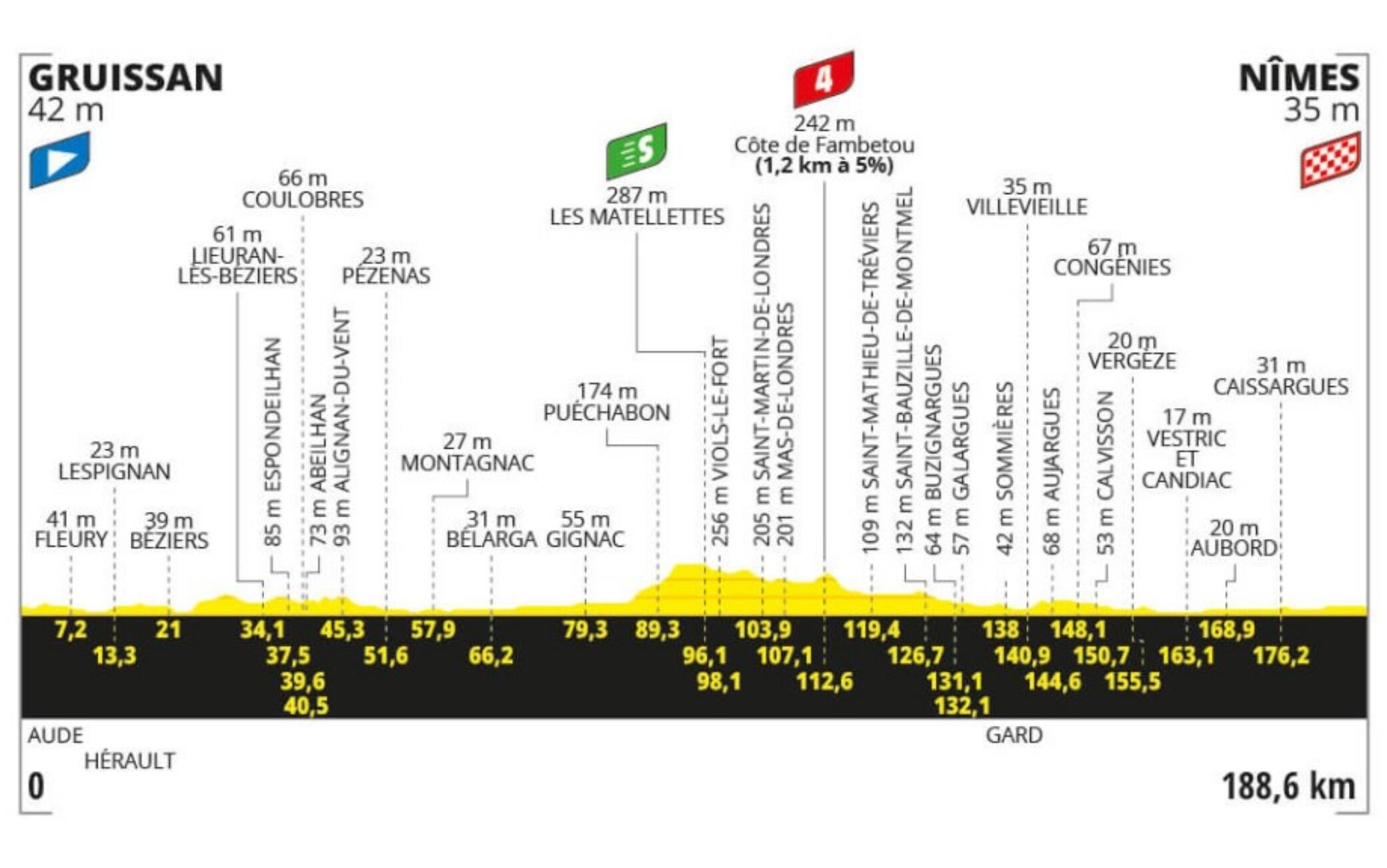 Tour de France, la 16^ tappa da Gruissan a Nimes: percorso e altimetria