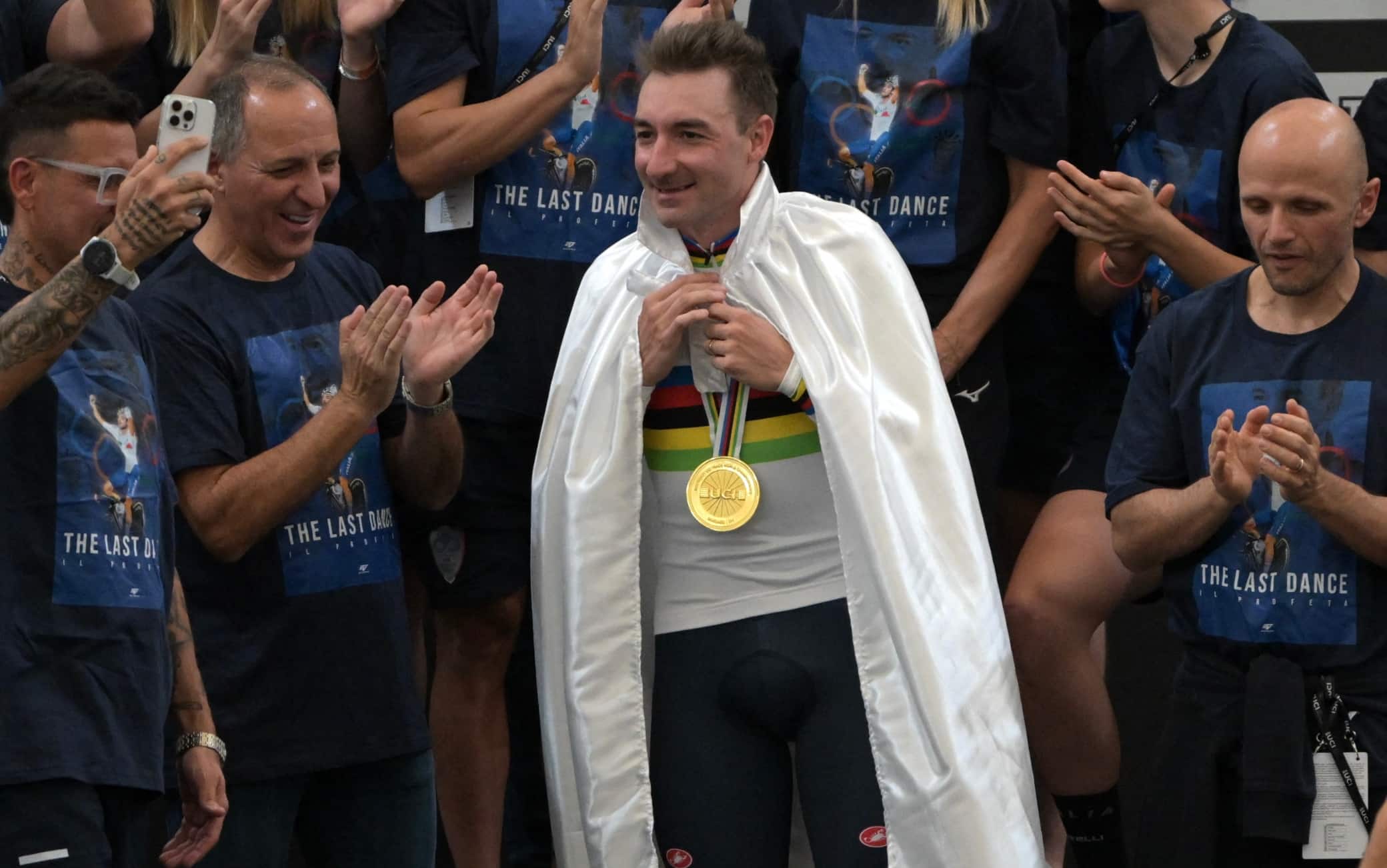 L'ultima gara di Viviani si trasforma in una favola. L'azzurro vince la medaglia d'oro ai Mondiali su pista nella gara ad eliminazione, per lui si tratta del terzo titolo iridato in carriera nell'eliminazione. È arrivato mimando una X, a indicare la fine dell'attività agonistica. La carriera di Elia termina così a 36 anni nel migliore dei modi, con l'abbraccio di amici e familiari che indossano una maglietta con scritto "The last dance". Ieri il bronzo della coppia Vittoria Guazzini-Chiara Consonni nella Madison