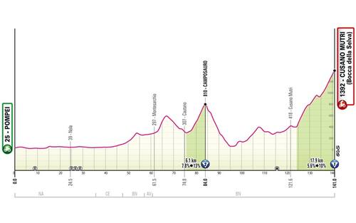 - Al posto dello Stelvio si salirà a Giogo di Santa Maria, 2498 metri, nuova Cima Coppi dell'edizione (la vettà più alta da scalare, al posto proprio dello Stelvio)