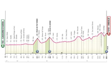 Potenziale occasione per i velocisti, se riusciranno a passare indenni i due GPM ravvicinati di 3^ categoria a Colle Giovo e a Bric Berton. Altrimenti, spazio agli attacchi da lontano