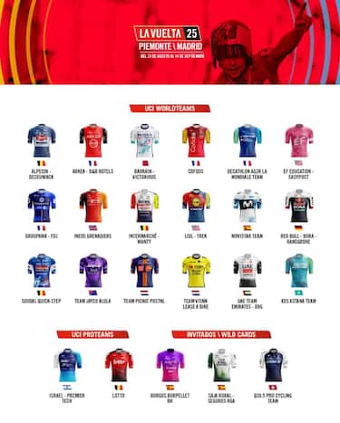 C'è una sola certezza: i tre Grandi Giri del 2025 avranno tre vincitori diversi. Simon Yates, padrone del Giro d'Italia, e soprattutto Tadej Pogacar, dominatore del Tour de France, non saranno al via della Vuelta in programma da sabato 23 agosto. Assente anche Roglic, campione in carica e maglia rossa per quattro volte in carriera. Jonas Vingegaard è il favorito sulla carta. L'Italia confida in Ciccone, Pellizzari e Tiberi. Di seguito, le squadre iscritte alla corsa spagnola, tutti i corridori partecipanti, gli aspiranti alla vittoria e i ritiri. Fuori dai giochi Ben O'Connor, secondo nel 2024