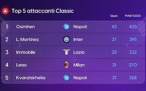 In attacco Osimhen stacca tutti. Il capocannoniere della scorsa stagione è l'unico che scollina i 40 fantamilioni. Il nigeriano condivide il podio con Lautaro e Immobile