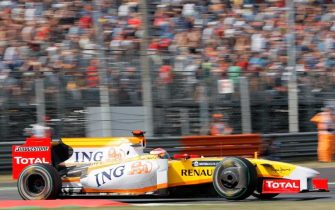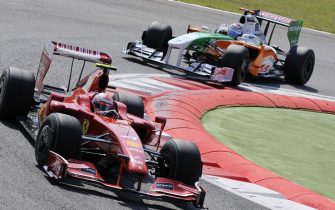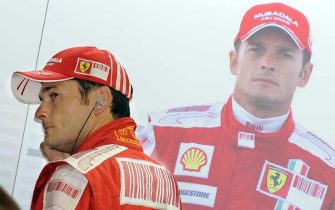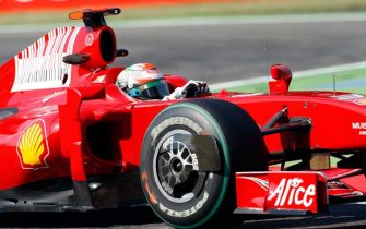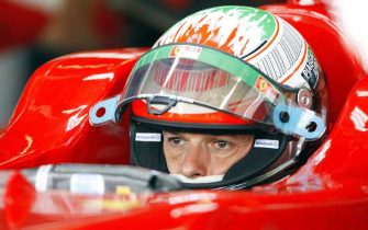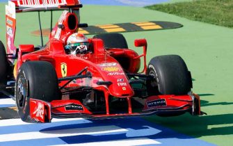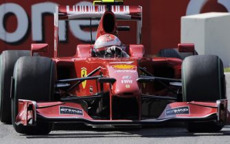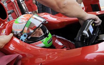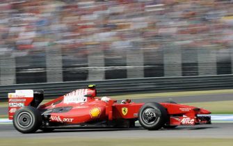 I tifosi della Ferrari invadono la pista a fine gara per far festa a Kimi Raikkonen, terzo qui a Monza