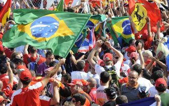 I tifosi della Rossa sotto il podio per festeggiare il terzo posto di Kimi Raikkonen
