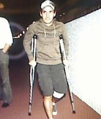 Esclusiva: Timo Glock all'uscita dall'ospedale con la gamba sinistra fasciata. Il tedesco della Toyota ha rimediato un taglio profondo cinque centimetri