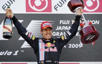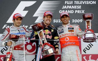 Il podio del Gp del Giappone: Vettel sul gradino più alto, poi Trulli e Hamilton