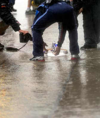 Ultimi tentativi di girare sul circuito ormai allagato.