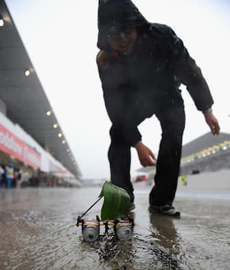 Un nubifragio si è abbattuto sul percorso giapponese costringendo gli organizzatori a rinviare le qualifiche: nella vana attesa di riprendere a girare sul circuito meccanici e piloti si sono dati al modellismo. GUARDA LE FOTO