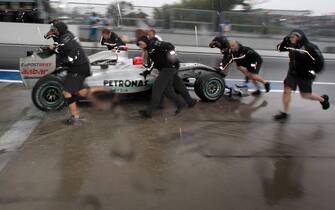 La safety car prova a girare sul circuito, ma gli organizzatori rimandano le qualifiche.