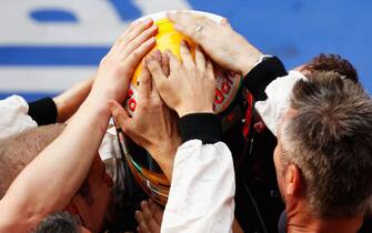 Hamilton fa la doccia allo champagne dopo la grande vittoria