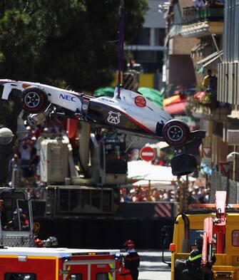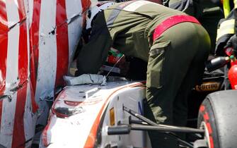 Perez è stato tirato fuori dalla scocca della vettura e messo su una barella per essere trasferito in ospedale, a Montecarlo