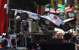 La vettura di Perez è andata a sbattere all'uscita dal tunnel prima contro un lato della pista di Montecarlo e poi, con la vettura ormai senza controllo, ha proseguito per centinaia di metri a forte velocità e finendo di lato contro le barriere