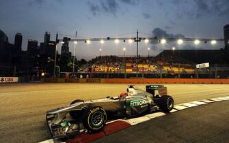 Una fase delle qualificazioni al Gran Premio di Singapore. Qui il finlandese Nico Rosberg su Mercedes