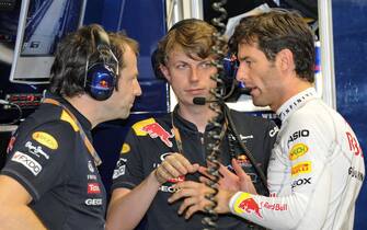 Mark Webber mentre discute con il suo team