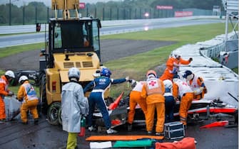 Bianchi andò a sbattere contro una gru mobile intervenuta sul tracciato per rimuovere la Sauber di Sutil, uscita fuori pista -