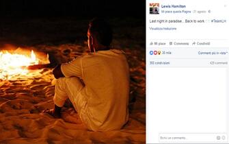 Il mare, la notte, il falò sulla spiaggia. E' un Hamilton tranquillo. Difficile non esserlo, vista la piega (positiva) che sta prendendo la sua stagione (Foto da Facebook) -