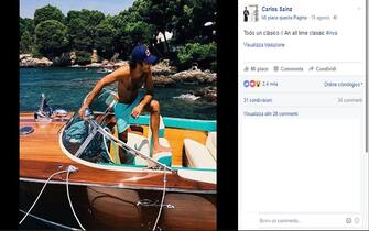 Sembra una foto dal sapore vintage. E invece è Carlos Sainz Jr a bordo di un affascinante motoscafo Riva (Foto da Facebook) -