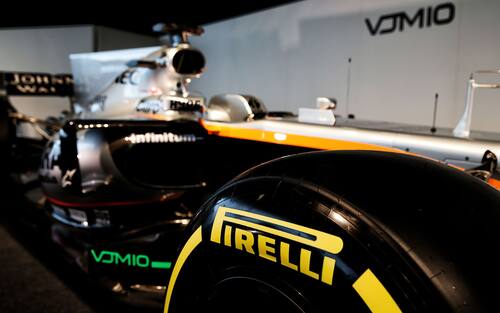 Spiccano anche qui gli pneumatici Pirelli, più larghi del 25% rispetto a quelli utilizzati nel 2016 (Foto Force India) -