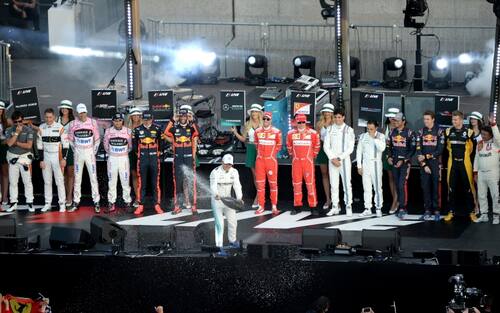 Tutti i piloti invitati sul palco allestito a Trafalgar Square -