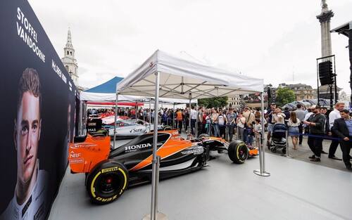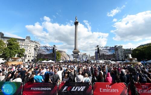Una bellissima immagine di Trafalgar Squadre, stracolma in occasione dell'F1 Show London -