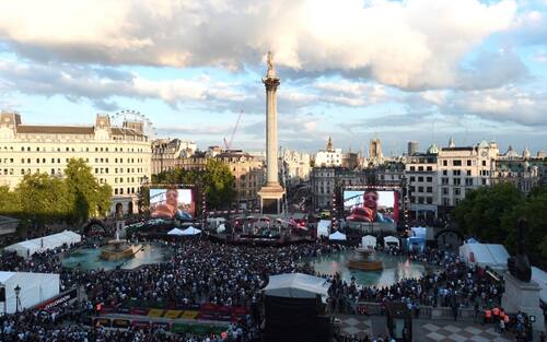 Trafalgar Square ripresa dall'alto. È stato un evento senza precedenti, la speranza è di vederlo anche in Italia -
