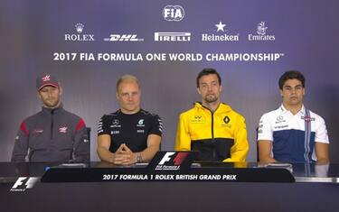 Nella conferenza piloti che ha aperto il GP di Gran Bretagna, il finlandese Bottas ha parlato dell'assenza di compagno di squadra all'evento di mercoledì a Londra (F1 Live): "Ognuno decide per sé". E Lewis: "Dovevo in una fase cruciale della stagione". Venerdì tutti in pista per le libere. Il weekend live su Sky Sport F1 HD (canale 207) e su skysport.it, con aggiornamenti in tempo reale all'interno del live blog