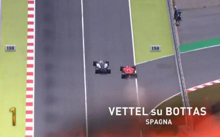 GP Spagna, 14 maggio - Non è arrivata la vittoria in pista ma questo sorpasso di Vettel su Bottas a Barcellona è al numero 1 della nostra Top 5. La pista era finita, lo spazio no. Ma per pensare e fare un sorpasso del genere con due ruote sull'erba ci vuole tutto il coraggio e l'aggressività di un quattro volte campione del mondo.