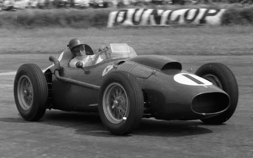 Peter Collins alla guida della Dino 246, nel Mondiale 1958 a Silverstone -