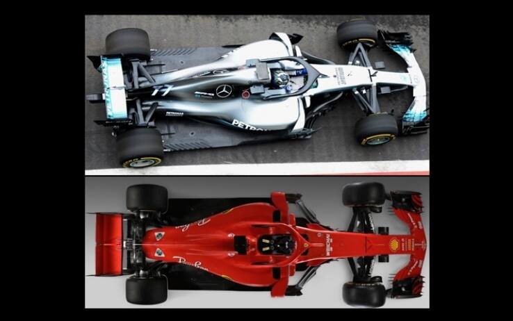 La Mercedes rispetto al 2017 ha mantenuto la stessa lunghezza di interasse mentre la Ferrari ha allungato il suo di circa 5 cm.