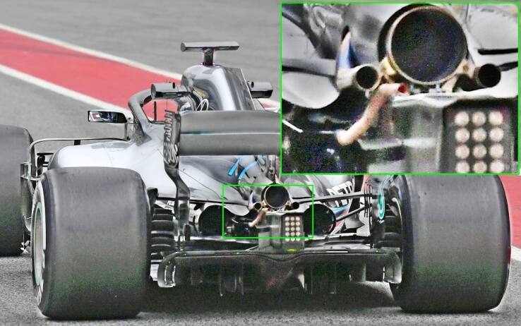 Soluzione che, nella giornata di ieri, è stata ripresa anche dalla Mercedes, utilizzando un tubicino per simulare quanto fatto dalla Rossa. La realizzazione del team anglo-tedesco è sicuramente molto rudimentale a dimostrazione che, in fase di progetto, avevano deciso di sfogare i gas presenti nel basamento in un’altra zona.