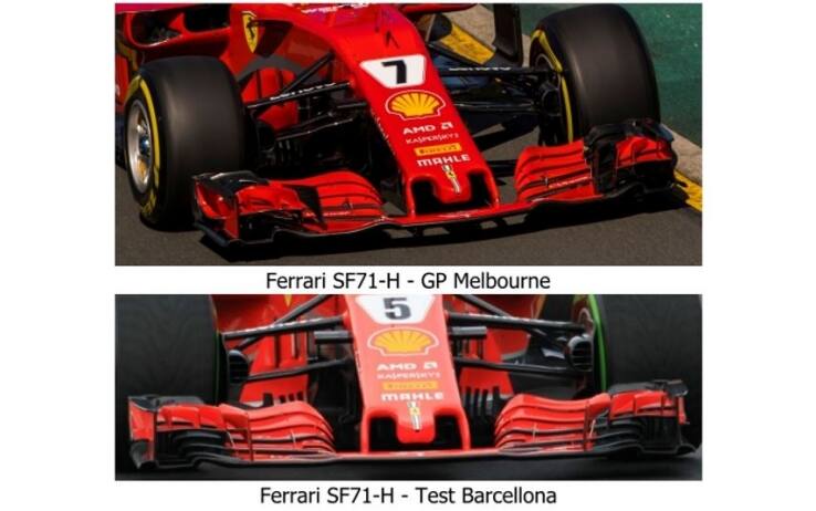 Il team di Maranello ha portato in Australia due versioni di ala anteriore. La prima è quella che è stata montata fin dalla presentazione che è stata utilizzata per tutti i test invernali. La seconda, che vedete nella foto in basso, è inspirata a quella utilizzata a fine 2017 sulla SF70-H.