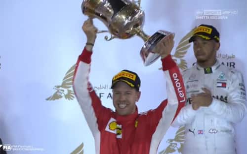 Sebastian Vettel ha conquistato il GP del Bahrain al termine di una gara carica di adrenalina. Ecco i momenti più emozionanti della gara -