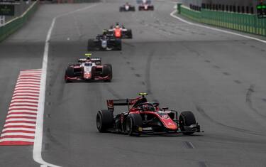 Sorprese a ripetizione anche nella gara sprint della F2 andata in scena a Baku. Italiani subito fuori. Fuoco resta fermo in pista già durante il giro di ricognizione, Ghiotto poco dopo la partenza è costretto a una sosta ai box. Continuano i tanti problemi di affidabilità dei nuovi propulsori in uso nella categoria da questa stagione. La gara si sviluppa su una fuga di Sette Camara che ben presto alimenta il proprio vantaggio fino a oltre tre secondi. Resta in bagarre Norris che poi va lungo e perde alcune posizioni, mentre da dietro ritorna velocissimo Russell e dai box arriva la conferma che anche Markelov è fermo.