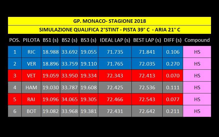 Concludendo, la Red Bull sembra essere la favorita per la pole position e la vittoria di questo GP. Ferrari e Mercedes solitamente, dalle prove libere alle qualifiche, “sbloccano” circa 20 cv che su questa pista equivalgono a circa 3 decimi al giro. Il gap che abbiamo visto quest’oggi sembra essere superiore ai 3 decimi, ma la Ferrari ha già fatto vedere in passato di essere la vettura che più progredisce dalle prove libere alle qualifiche. Se anche questa volta, grazie al lavoro di setup, la SF71H riuscirà a migliorare è lecito aspettarsi una Rossa in lizza per la pole position insieme ai due piloti della Red Bull. Dietro a Red Bull e Ferrari ci sarà, sicuramente, Mercedes che, migliorando il setup della W09, sembra avere le potenzialità per inserirsi nella lotta per la seconda fila specialmente con Hamilton.