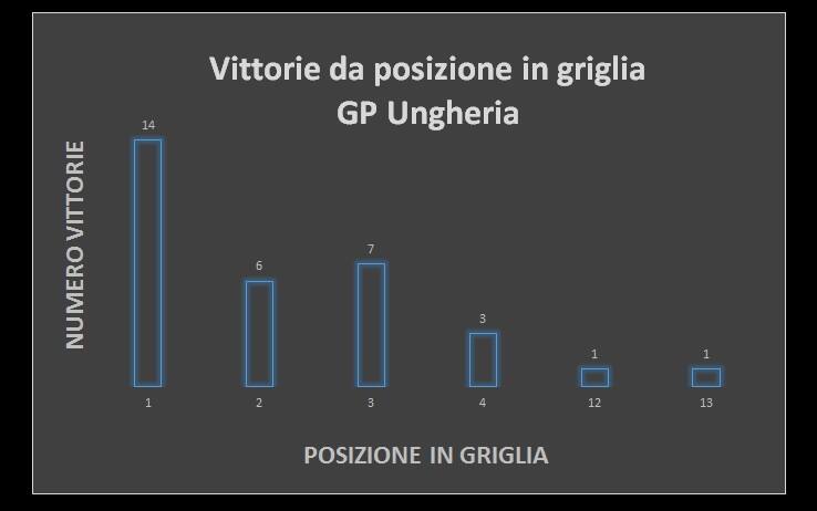 Il record di pole appartiene invece a Schumacher, che all’Hungaroring ha segnato ben 7 partenze al palo (secondo valore di sempre dietro alle sue 8 pole a Suzuka ed alle 8 di Senna ad Imola). Tra i piloti in attività primeggia Hamilton con 5 pole. Al via di questo GP troviamo 5 vincitori dell’Hungaroring: Hamilton (5 successi), Vettel (2), Alonso (1), Raikkonen (1), Ricciardo (1) e 4 poleman: Hamilton (5 pole); Vettel (3); Alonso (2), Raikkonen (1).