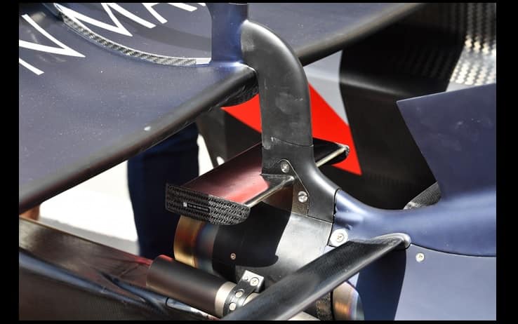 La RB14 la monoposto che utilizza l’ala posteriore più scarica visto che paga in potenza rispetto a Ferrari e Mercedes. Il team può fare questo perché il corpo vettura riesce a generare molto carico pagando poco in resistenza all’avanzamento.