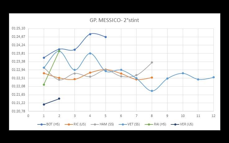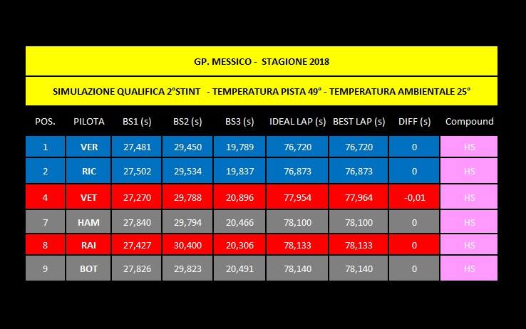 A differenza dello stint precedente le prestazioni di Vettel ed Hamilton con questa mescola sono decisamente migliorate e, per la Rossa, lascia ben sperare un giro in 1:21,8 fatto da Vettel. Il pilota tedesco, per tutta la simulazione, aveva utilizzato il “mode push engine 6” mentre in quel passaggio era passato al “mode push engine 4” che gli ha garantito maggior potenza.
