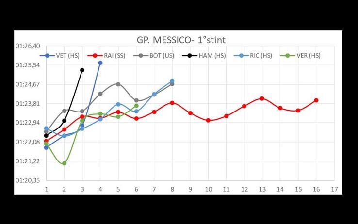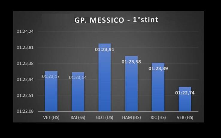Le Red Bull RB14, analizzando i best sector, ha fatto la differenza su Mercedes e Ferrari principalmente nel terzo, quello più guidato. Vettel in soli 20 s ha rimediato un gap da Verstappen di oltre 1 s mentre Hamilton è riuscito a fare leggermente meglio pagando “solo” 7 decimi. La Mercedes che ha deluso nel primo settore dove è stata particolarmente lenta a dimostrazione del fatto che hanno girato in pista con un livello di potenza piuttosto basso per non incorrere in problemi.