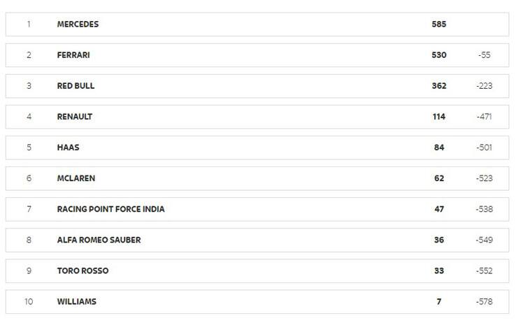 Con il responso arrivato da Parigi, restano inalterate le classifiche del Mondiale: la Renault conserva 30 punti di vantaggio sulla Haas e vede sempre più vicino il traguardo del quarto posto nel Costruttori.