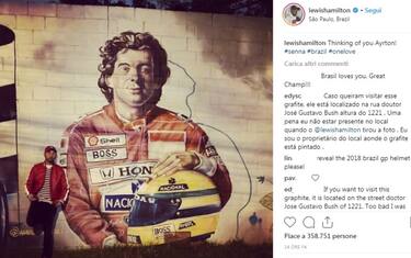 Una foto su Instagram ha suscitato qualche "mugugno social". Il campione del mondo della Mercedes ha postato un'immagine in cui è appoggiato al murales del mito Ayrton Senna. Il GP del Brasile è in diretta esclusiva su Sky Sport F1: gara domenica alle 18.10. Da non perdere gli specali Hamilton e Wolff sul canale 207. Appuntamento in live streaming su Skysport.it!