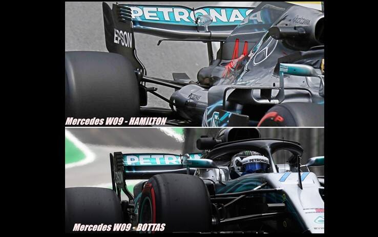 In casa Mercedes dopo i grandi problemi di setup accusati negli ultimi due GP c’è stato un cambio di metodologia di lavoro, infatti i due piloti durante le Prove Libere 1 hanno girato con un setup aerodinamico diversificato. Questo è stato fatto per raccogliere il maggior numero di dati per capire se sarà conveniente utilizzare minor carico aerodinamico per privilegiare il primo e terzo settore o se servirà un maggior carico “sacrificando” il settore 1 e 3 per privilegiare quello centrale.