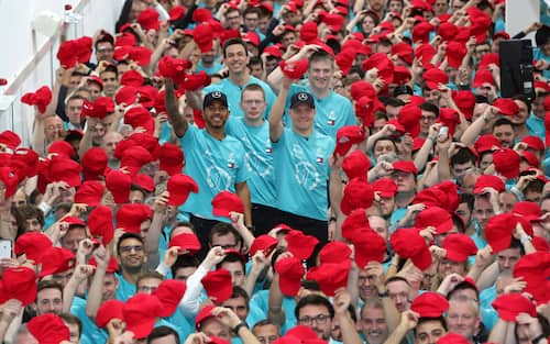 I campioni del mondo hanno celebrato il doppio titolo, piloti e costruttori, a Brixworth e Brackley. Hamilton: "Sono Orgoglioso di voi". Wolff: "Complimenti a tutti, stagione fantastica"