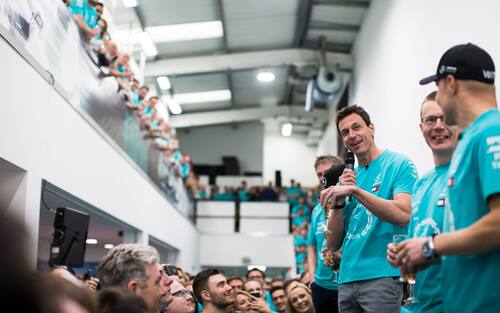 Quinto titolo mondiale per Lewis Hamilton e quinto titolo costruttori consecutivo per la Mercedes. E' stato il giorno dei festeggiamenti con tutti i dipendenti dei "quartier generali" di Brixworth e Brackley. Incontenibile la gioia dei presenti (pazzesche coreografie!) e quella del presidente esecutivo Toto Wolff