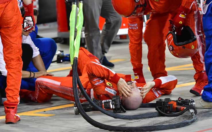 Cigarini a terra dopo l'incidente nel GP del Bahrein dello scorso aprile (Foto Getty)