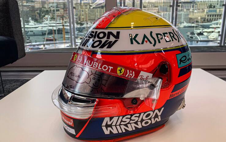 Una weekend unico per Charles Leclerc. Già dalle libere del giovedì a Montecarlo, sua gara di casa e che per la prima volta affronta da pilota titolare della Ferrari, indossa un casco speciale: un elmetto celebrativo con una scelta stlistica e cromatica particolare. Si tratta di una doppia dedica sul casco del monegasco, che è diviso in due parti: sulla destra i colori di quello che fu il casco ustilizzato da Jules Bianchi in F1; sall'altra parte, invece, i colori del casco del papà Hervé, anche lui pilota dal 1983 al 1988 in Formula 3 e scomparso nel giugno del 2017.