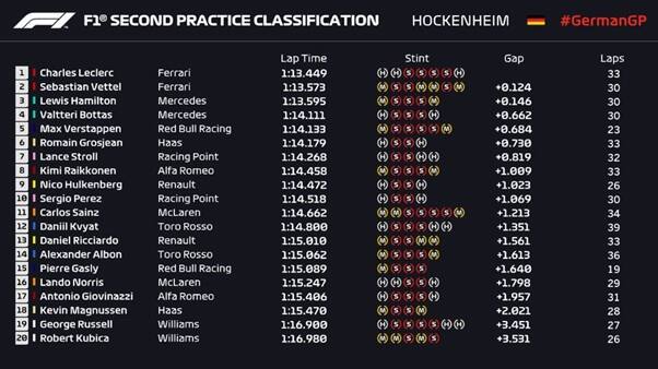 Brilla la Ferrari in entrambe le sessioni di prove libere sul circuito dell'Hockenheimring, con una SF90 che sembra essersi adattata molto bene alle temperature infernali. Mercedes ha sofferto particolarmente il caldo, mentre la Red Bull è rimasta in ombra