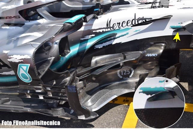 L’ala anteriore ha subito dei piccoli affinamenti nella zona posteriore dell’endplate con l’aggiunta di un piccolo profilo aerodinamico che aiuta l’aria ed essere espulsa esternamente favorendo il concetto aerodinamico chiamato out-wash. Non è certamente una cosa inedita visto che, Ferrari, utilizza una filosofia analoga che è stata montata sulla SF90 nel Gp di Francia.