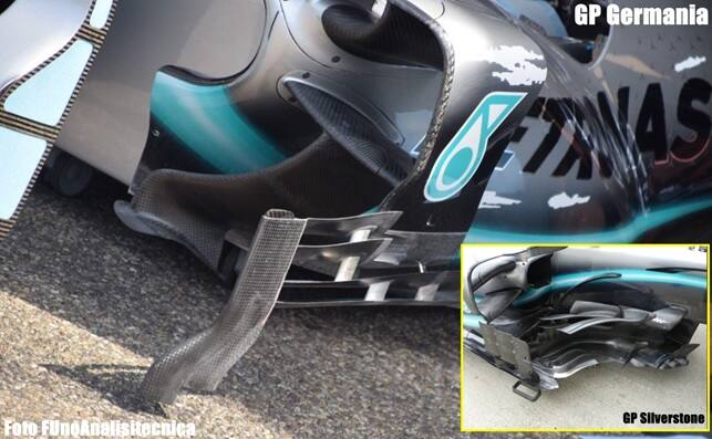 La Mercedes si è presentata a Hockenheim con un nuovo pacchetto evolutivo. Dall'ala anteriore, modificando la zona dell'endplate, alla novità più evidente nella zona centrale dei bargeboards dove è intervenuta sui deviatori di flusso laterali alle pance. Il GP della Germania è in diretta esclusiva domenica 28 luglio alle 15.10 su Sky Sport F1 e Sky Sport Uno